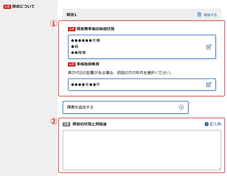 WEB履歴書「障害情報」の編集画面はこちらから↓