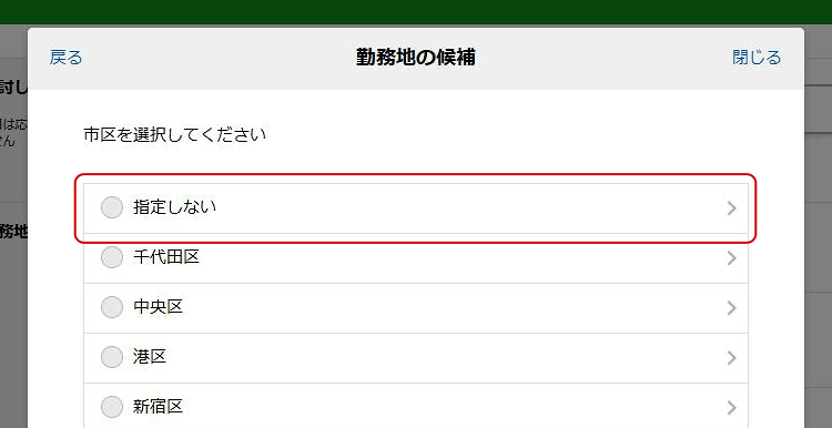 「都道府県」を選択した後は、「市区」と「路線」は「指定しない」を選択すればOK!