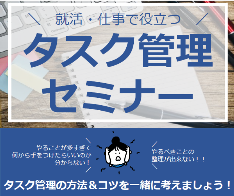 セミナーでは、就職活動や仕事で活用できるタスク管理のコツを紹介しました。