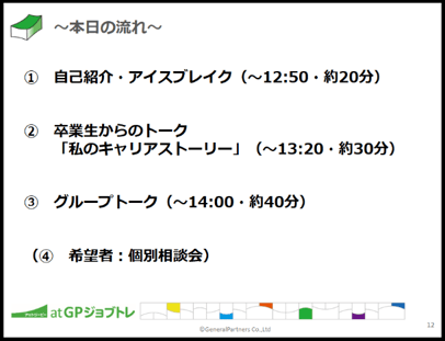 イベントでは、早稲田大学卒業生であり、atGPジョブトレの卒業生でもあるAさんをゲストにお招きし、キャリアについてのリアルストーリーをお話しいただきました。